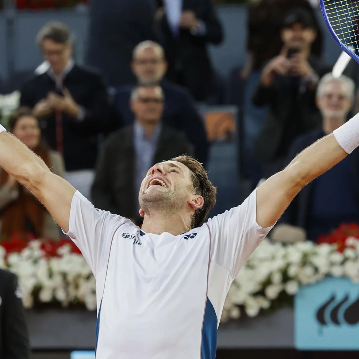 El tenista noruego Casper Ruud celebra la victoria ante el británico Jack Draper, al término de la final del Mutua Madrid Open. EFE/Chema Moya, de archivo.