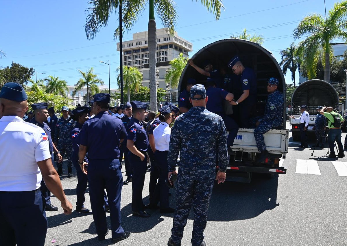 Momento en que agentes son enviados a reforzar prevención policial en Santo Domingo (Foto: Félix Lara/ El Nuevo Diario)