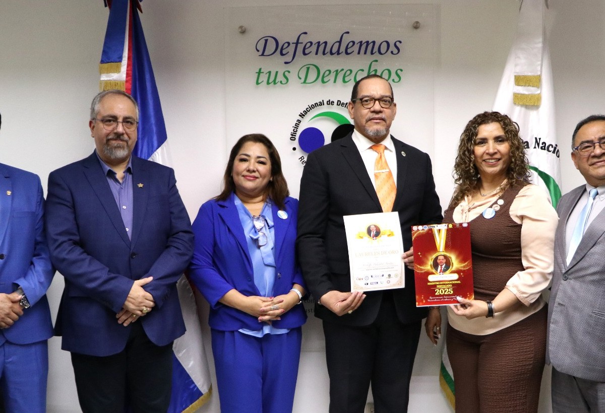 EL NUEVO DIARIO, SANTO DOMINGO.– El Director de la Oficina Nacional de Defensa Pública (ONDP), Rodolfo Valentín Santos, recibió este martes tres reconocimientos internacionales durante la visita oficial que una delegación de magistrados, jueces y académicos de Perú, México y Guatemala realizó a la sede de la institución.
