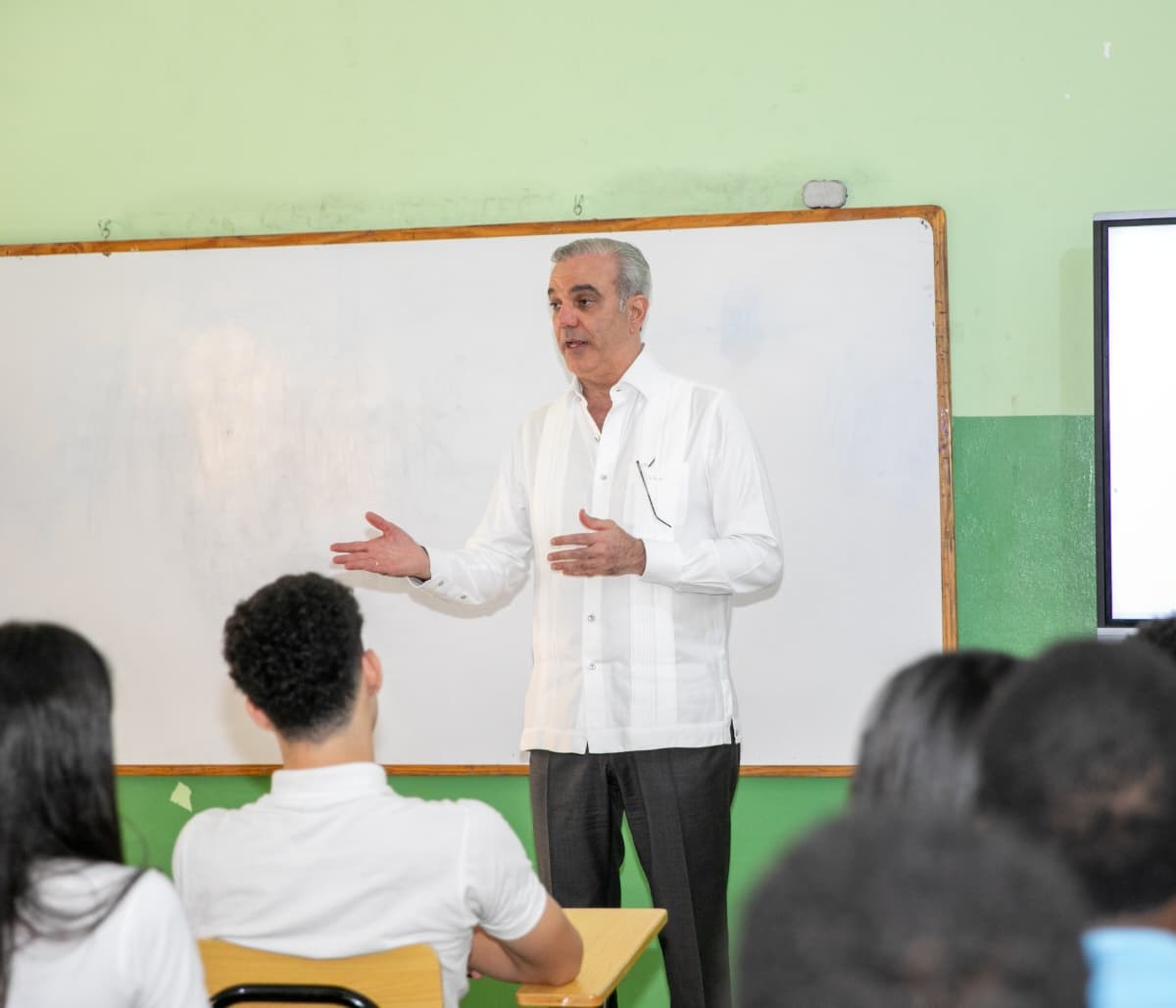 El presidente Luis Abinader mientras hacía las veces de profesor. (Foto: Prensa Presidencia de la República)