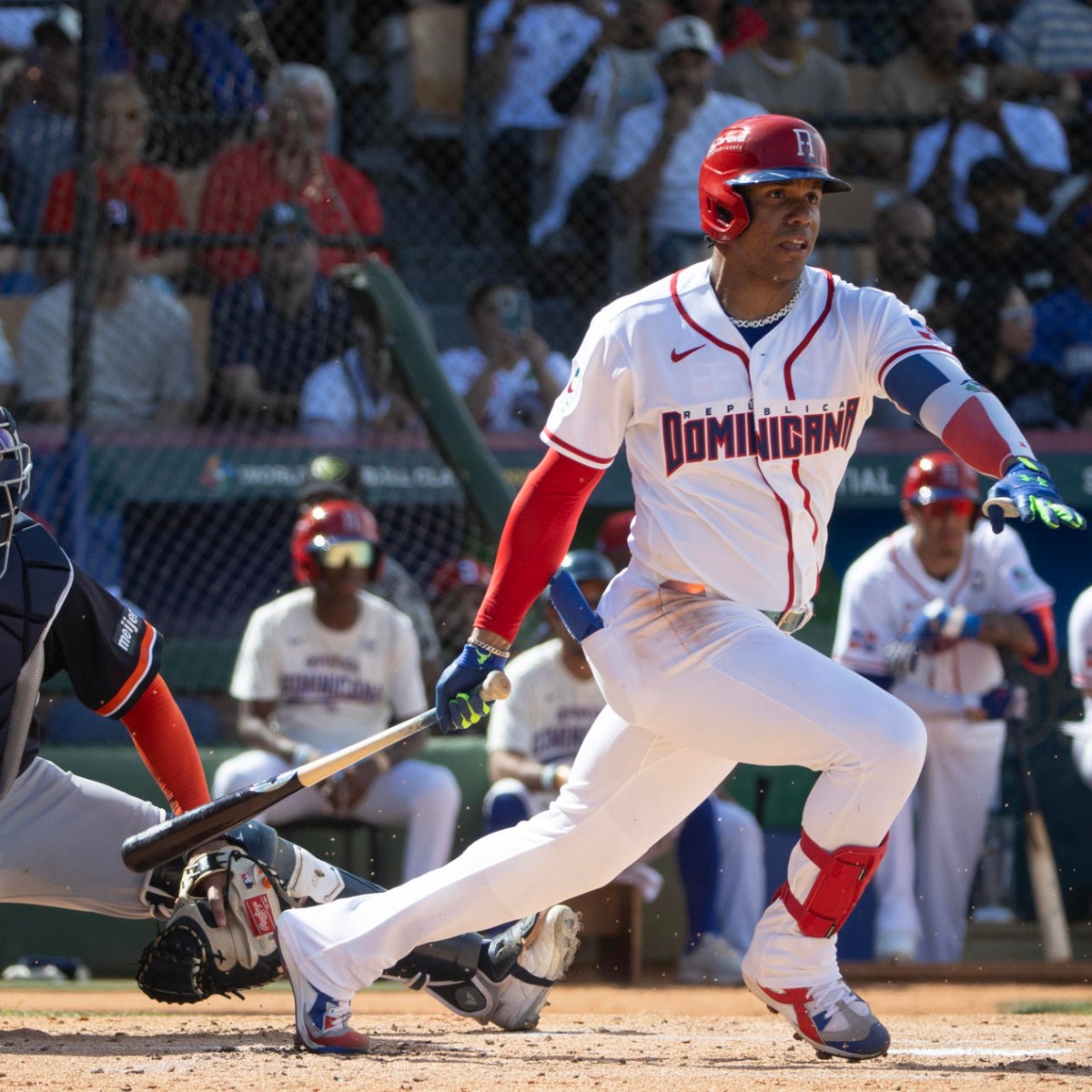 La respuesta de los dominicanos llegó en la parte baja del tercer episodio, cuando con dos outs, Soto disparó un triple al jardín central para remolcar a Fernando Tatis Jr. y a Ketel Marte, para darle la vuelta al marcador (2-1).
