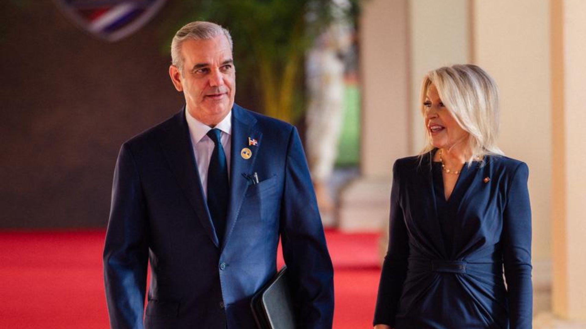 A su llegada, Abinader caminó por la alfombra roja dispuesta para los mandatarios participantes y posteriormente fue conducido por un edecán oficial hacia el interior del recinto donde se desarrolla el evento.