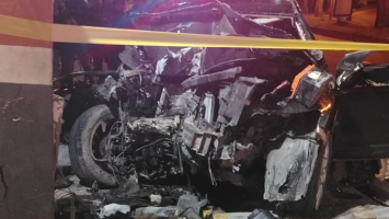 El automóvil quedó completamente destruido a causa del impacto. Imágenes captadas en la escena muestran la parte frontal del vehículo totalmente aplastada, piezas esparcidas en la vía y el área acordonada por las autoridades.