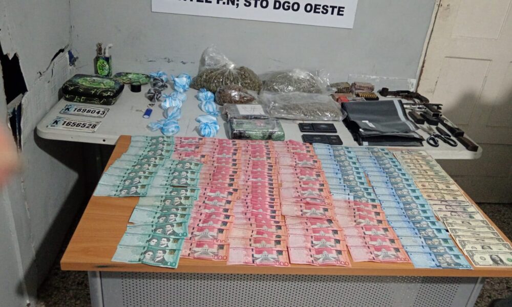 Los Alcarrizos.- Agentes de la Subdirección Regional de Inteligencia (DINTEL) de la Policía Nacional incautaron drogas, armas de fuego, municiones y dinero en efectivo durante un allanamiento realizado en una vivienda del sector Pueblo Nuevo, municipio Los Alcarrizos.