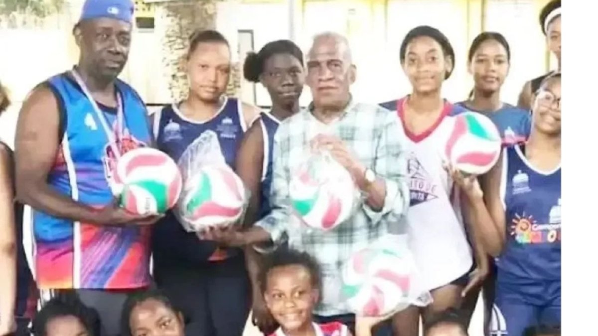 El presidente de la Federación Dominicana de Clubes (Fedoclubes), profesor Roberto Ramírez, entregó bolas al equipo de voleibol femenino de Guachupita como parte de su compromiso con el fortalecimiento de la familia clubística dominicana.