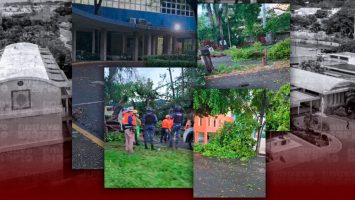 En la Facultad de Ingeniería y Arquitectura se observan escombros y restos de vegetación en la entrada, en tanto que en otras áreas del campus hay acumulación de hojas y ramas partidas, así como posibles afectaciones en el tendido eléctrico debido a la caída de árboles.
