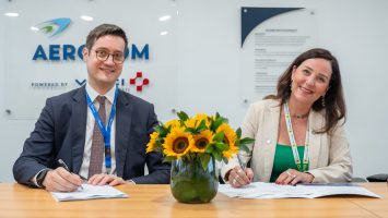 El acuerdo fue firmado por Flavia Callafange, directora de Hidden Disabilities Sunflower para América Latina y Cyril Girot, director general de Aerodom.