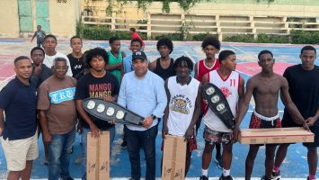 EL NUEVO DIARIO, BARAHONA.– El dirigente político del Partido de la Liberación Dominicana (PLD), Hendris Rivas, entregó varios juegos de luces para la iluminación de la cancha municipal de Vicente Noble, en una acción orientada a fortalecer la práctica deportiva entre los jóvenes de la comunidad.