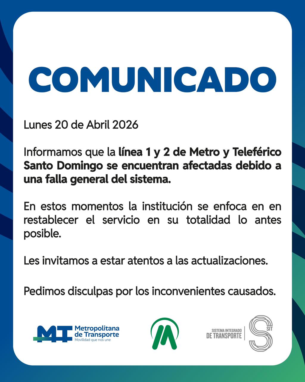 De acuerdo con un comunicado de la Empresa Metropolitana de Transporte, se registró una falla general del sistema y que se encuentran «enfocados» en restablecer el servicio en su totalidad lo antes posible.