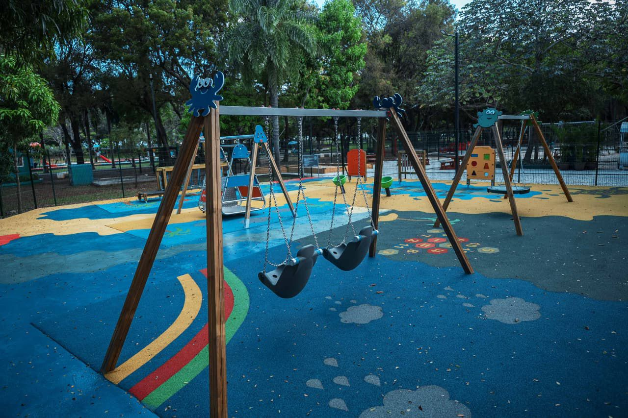 El nuevo parque integra elementos pensados para la accesibilidad universal, como paneles en braille, lenguaje de señas, instrumentos musicales, módulos táctiles y juegos adaptados.
