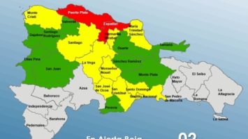 Mientras que en alerta verde figuran San Juan, Elías Piña, Duarte (especialmente el Bajo Yuna), Samaná, Valverde, Santiago Rodríguez, Dajabón, Monte Plata, Peravia y Sánchez Ramírez.