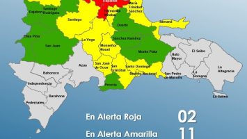 Mientras que en alerta amarilla se encuentran San Cristóbal, Montecristi, San José de Ocoa, Distrito Nacional, Santiago, el Gran Santo Domingo, La Vega, Samaná y Moseñor Nouel.