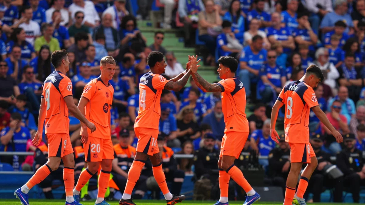 El Barcelona se acercó a su segundo título consecutivo de La Liga después de que Fermín López y Marcus Rashford anotaran para darle a su primer triunfo en Getafe en seis temporadas el sábado.