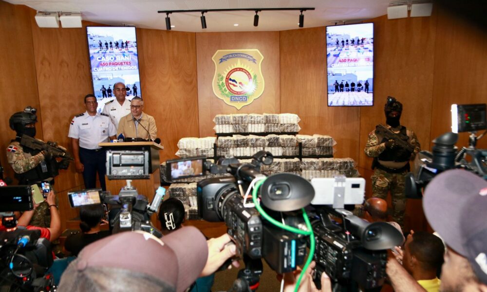 Santo Domingo.-Agentes de la Direccion Nacional de Control de Drogas (DNCD), efectivos de la Armada de República Dominicana (ARD), la Fuerza Aérea (FARD), agencias de Inteligencia del Estado, apoyados por la Administración de Drogas de Estados Unidos (DEA) y otros organismos internacionales, bajo la coordinación del Ministerio Público, incautaron un cargamento de 450 paquetes de cocaína, durante una ardua labor de persecución en contra de una narcolancha, que duró poco más de 12 horas.