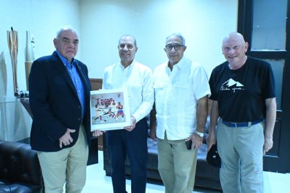 Abraham Key (centro), presidente de la Pony League Internacional, junto a Diógenes De La Cruz, de la DCNB y Eugenio Báez, presidente Pony League RD. EL NUEVO DIARIO, LAS AMERICAS. -La Dirección del Co...