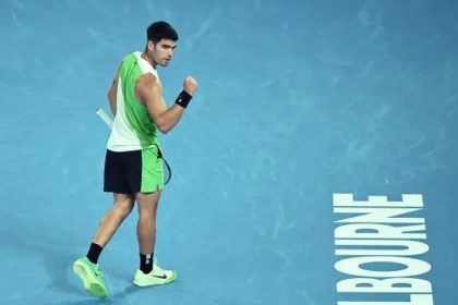 El tenista español Carlos Alcaraz en acción durante el partido del Abierto de Australia 2026 en el Melbourne Park en el que se ha impuesto al australiano Adam Walton. EFE Leer resumen de la noticia (I...