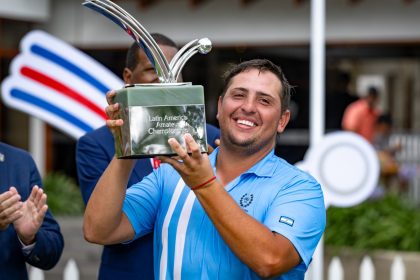 El argentino Mateo Pulcini, nuevo campeón del LAAC, levanta el trofeo que le concede el derecho de jugar 3 de los 4 majors del golf. (Foto cortesía LAAC). Leer resumen de la noticia (IA) CLICK AQUÍ A...