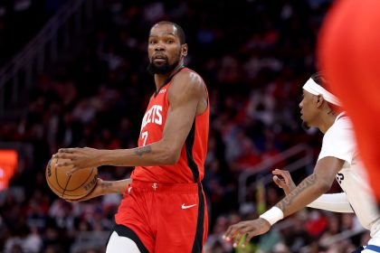 Kevin Durant de los Houston Rockets intenta lanzar durante el partido contra los Minnesota Timberwolves en el Toyota Center el 16 de enero de 2026 en Houston, Texas. (Foto de Kenneth Richmond / GETTY ...