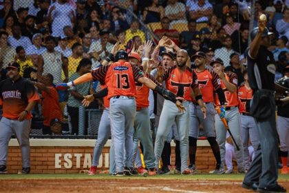 La celebración de los peloteros de los Toros en su juego ante las Águilas. Leer resumen de la noticia (IA) CLICK AQUÍ Analizando noticia… por favor espera. EL NUEVO DIARIO, SANTIAGO.- Jaime Barr...