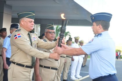 El ministro de Defensa, teniente general Carlos Antonio Fernández Onofre, ERD, recibe la antorcha de los Juegos Deportivos de las Fuerzas Armadas y la Policía. EL NUEVO DIARIO, SANTO DOMINGO.- El mini...