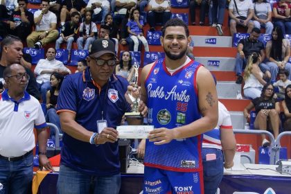Marlon Saint-Hilaire recibe el premio al Jugador Más Valioso por parte de Modesto Taveras, presidente de ABASARO (foto: fuente externa) EL NUEVO DIARIO, SANTIAGO RODRÍGUEZ.– El Club Pueblo Arriba cons...
