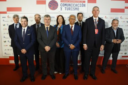 (De i a d, primera fila) El Secretario de Turismo del Estado de Chihuahua de México, Felipe Edibray; el presidente de la Agencia EFE, Miguel Ángel Oliver; el ministro de Turismo de Cabo Verde, José Lu...