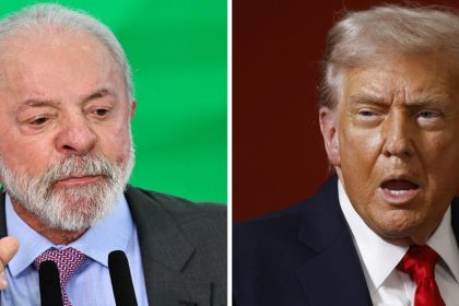En esta combinación de imágenes de archivo creadas el 24 de octubre de 2025, el presidente de Brasil, Luiz Inácio Lula da Silva (izq.), pronuncia un discurso durante el lanzamiento de un programa de r...
