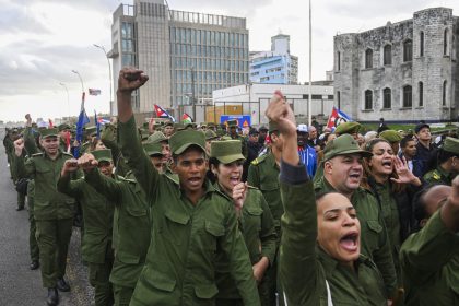 Fotografía de archivo del presidente de Cuba, Miguel Diaz-Canel (c), junto al Ministro de las Fuerzas Armadas Revolucionarias (FAR), Alvaro López Miera (c-i) y el Ministro del Interior, Lázaro Alberto...