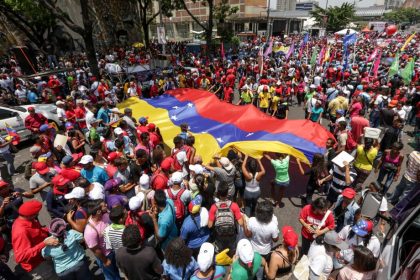 Cientos de chavistas marcharon en sectores cercanos al Fuerte Tiuna, el principal complejo militar de Venezuela -donde hubo ataques-, en el sur de la capital, donde autoridades locales hicieron un lla...
