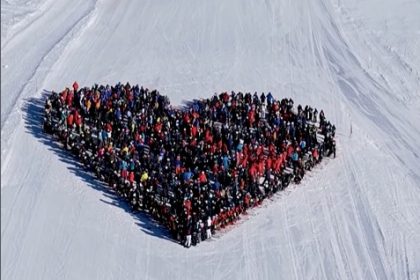 El corazón formado. (Fuente externa) EL NUEVO DIARIO, REDACCION DIGITAL. -En medio del luto que envuelve a la estación alpina de Crans-Montana, esquiadores formaron un gran corazón sobre la nieve pa...