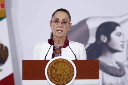 La presidenta de México, Claudia Sheinbaum, habla durante una rueda de prensa en el Palacio Nacional de la Ciudad de México (México). EFE/Sáshenka Gutiérrez MEXICO.- La presidenta de México, Claudia S...