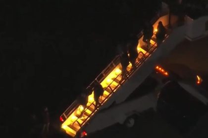 Captura de pantalla del descenso desde un avión militar del presidente de Venezuela, Nicolás Maduro, a su llegada a Nueva York tras su captura en Caracas por Estados Unidos. EFE/NYC NUEVA YORK.- El pr...