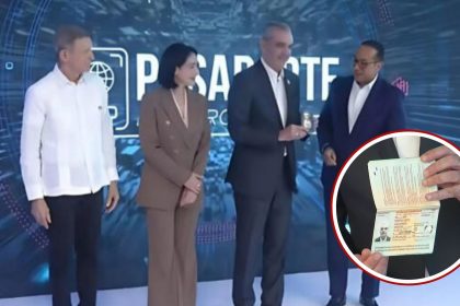 El presidente de la República, Luis Abinader, recibió este miércoles la primera libreta del pasaporte electrónico “ordinario” dominicano, como prueba oficial de impresión de la nueva libreta del pasap...