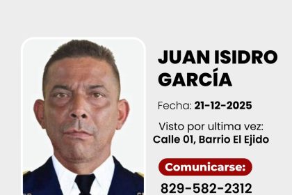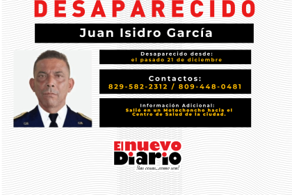 EL NUEVO DIARIO, SANTIAGO.- Se encuentra desaparecido el señor Juan Isidro García, de 56 años, quien salió de su residencia desde el pasado 21 de diciembre de 2025, ubicada en el sector El Ejido, Sant...