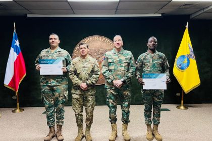En el centro, coronel César A. Medina Calderón, junto a autoridades en Chile (Fotos: Frances Pineda) EL NUEVO DIARIO, CHILE.– En el marco del fortalecimiento de la cooperación bilateral en materia car...