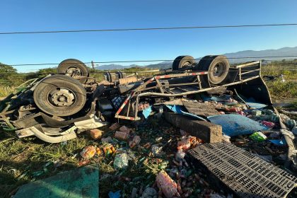 EL NUEVO DIARIO, SAN JUAN.- Un camionero de la empresa Cola Real se accidentó la mañana de este viernes, próximo a la entrada del distrito municipal de Las Charcas de Marías Nova en San Juan, sin que ...