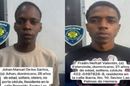 SANTO DOMINGO.- La Policía Nacional arrestó a dos hombres señalados como los presuntos responsables de un asalto ocurrido en las afueras de una clínica en el municipio de Los Alcarrizos, hecho que fue...