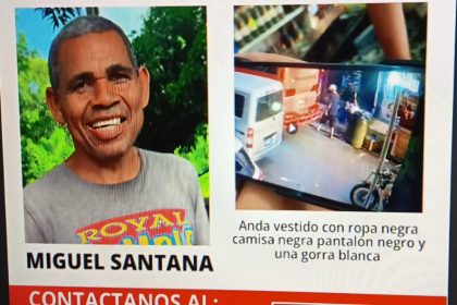 EL NUEVO DIARIO, SANTO DOMINGO.- Familiares del señor Miguel Santana, solicitan ayuda para dar con su paradero, visto por última vez el 18 de noviembre en la comunidad Los Cocos del Municipio San Anto...