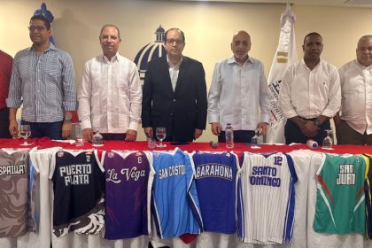 Desde la izquierda, Ramón Ceballos, Rafael Uribe, Garibaldi Bautista, Franklin De la Mota, Fernando Teruel, Alberto Ozuna y Fernando Geraldino, en la rueda de prensa de este martes. EL NUEVO DIARIO, S...