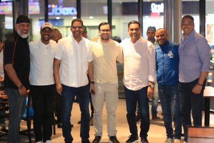El ministro de Deportes, Kelvin Cruz junto a Aquiles Ramírez, Bienvenido Carmona Jr., Rafael Uribe, William Aish, Baudilio Jiménez y Junior Páez. EL NUEVO DIARIO, SANTO DOMINGO.- El programa radial Di...
