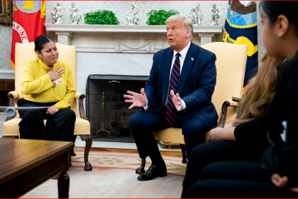 Gloria Guillén y Donald Trump. Foto/fuente externa Washington. – El presidente de Estados Unidos, Donald Trump, se reunió este jueves con la familia del sargento Andrew Wolfe, de la Guardia Nacional A...