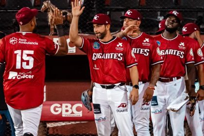 Jugadores de los Gigantes celebran el triunfo. EL NUEVO DIARIO, SAN FRANCISCO DE MACORÍS.- Johan Rojas remolcó dos carreras y Deyvison De los Santos conectó dos sencillos en la victoria de los Gigante...