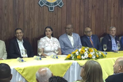 Luis Pérez, presidente del Colegio Dominicano de Periodistas, encabeza la Mesa de Honor del cabio de directiva que dirige Luisianny Hierro, Amable Guzman, Robinson Santos, Nicolás Arroyo Ramos, Guaroc...