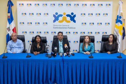 Director general de Contrataciones Públicas, Carlos Pimentel, junto a la directora de Políticas, Normas y Procedimientos, Mercedes Eusebio, la consultora jurídica, Raquel Miranda, el director de Fomen...