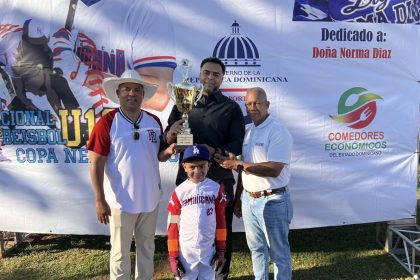 Nelson Cruz entrega a Juan Núñez y Eriberto Miranda Then la Gran Copa que se disputan los equipos. EL NUEVO DIARIO, Santo Domingo, D.N.- Los representantes de Cotuí, la Liga Cristián Serrano (Pimentel...