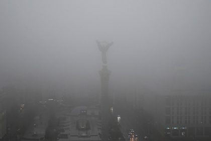 Vehículos circulan por la Plaza de la Independencia bajo una densa niebla, en Kiev, el 23 de noviembre de 2025, durante la invasión rusa de Ucrania. (Foto de Sergei GAPON / AFP) EL NUEVO DIARIO, KIEV,...