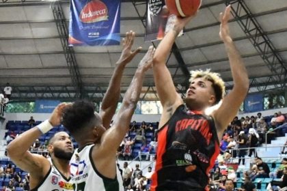 Randy Santos al momento de hacer ofensiva defendido por Óscar Balbuena. EL NUEVO DIARIO, LA VEGA.- Con la amplia ventaja de 105 por 76 de La Villa al Parque Hostos llegó a cinco victorias con una derr...