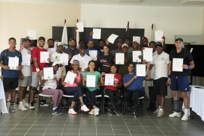 Los encargados del curso, Emmanuel Novas y Luisanna Rodríguez, junto a los entrenadores que posaron con sus diplomas. EL NUEVO DIARIO, SANTO DOMINGO.- La Federación Dominicana de Tenis (Fedotenis), c...