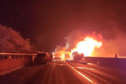 Imagen extraída de un video de EFE. EL NUEVO DIARIO, SÉUL.- Dos personas murieron y cuatro resultaron heridas este lunes en un aparatoso choque en cadena que involucró 13 vehículos, incluidos un camió...