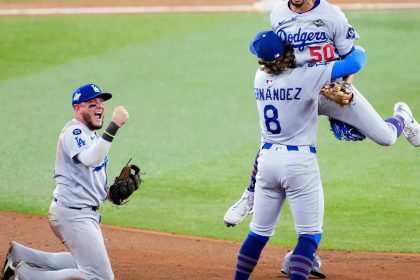 Jugadores de los Dodgers festejan el triunfo. Foto MLB. EL NUEVO DIARIO, SANTO DOMINGO.- Los Dodgers hicieron de todo para conseguir forzar el séptimo juego de la Serie Mundial. El dirigente Dave Robe...